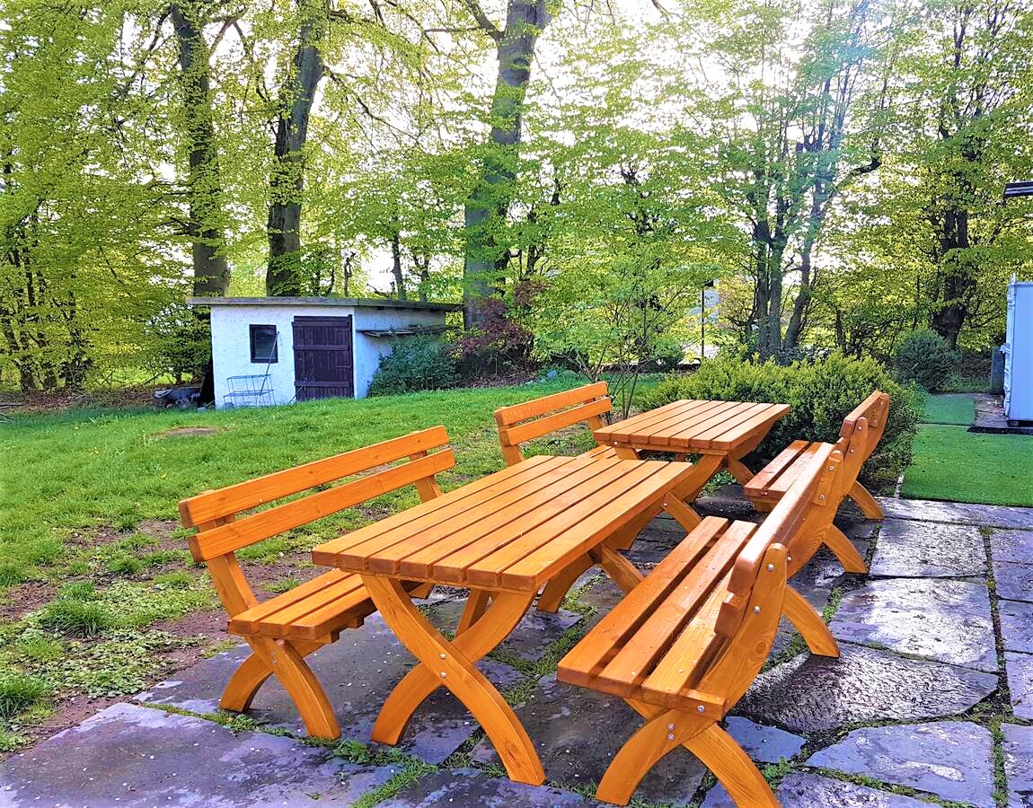 Step out onto one of terraces to enjoy a sunny lunch under the pergola with a lovely view, or to play a game of pingpong, have a BBQ, or sit around the fire pit in the evening. A play ground and trampoline make the fun for kids complete