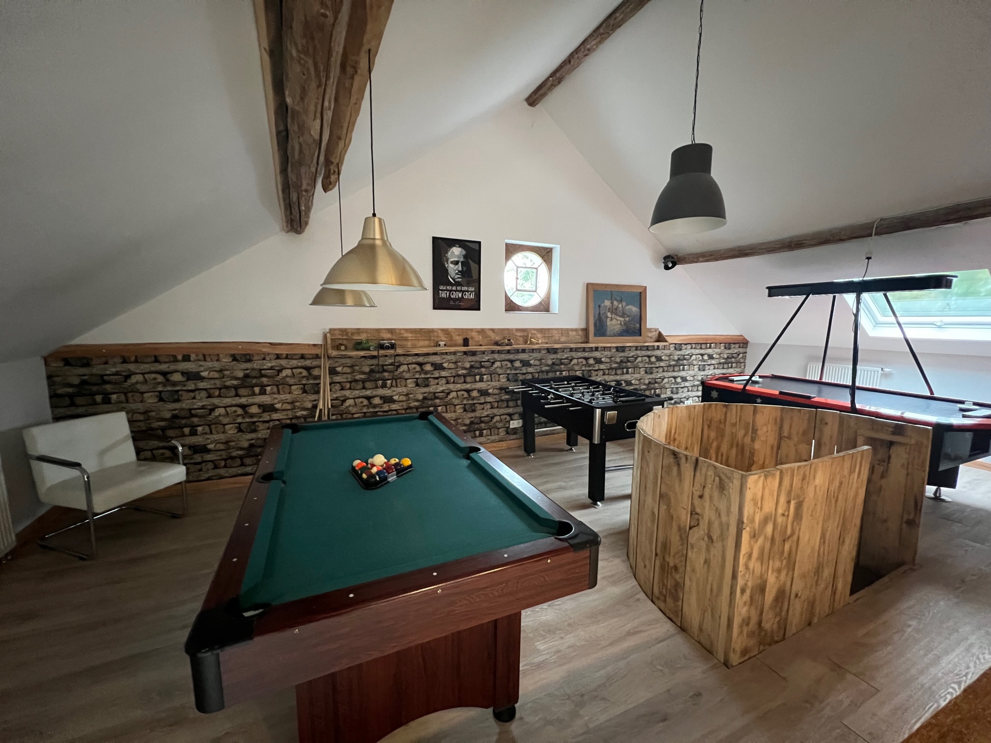 • The floor also features a games room with table football, a pool table, and table hockey.